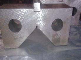V型架主要用來(lái)安放軸,套筒,圓盤等圓形工件,以便找中心線與劃出中心線。一般V型架都是一副兩塊,兩塊的平面與V型槽都是在一次安裝中磨出的。